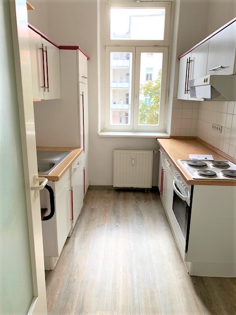 Diese schöne 4-Raum Wohnung ist frei werdend zum 01.12.20125 und befindet sich im dritten Obergeschoss des Vorderhauses. Die Räume sind mit einem gepflegten Laminatfußboden ausgestattet und laden zum Wohlfühlen ein. Das Bad ist innenliegend und verfügt über eine gemütliche Wanne sowie einen Waschmaschinenanschluss. Ein Zimmer ist ein Durchgangszimmer, zum hinteren vierten Zimmer mit anliegendem Balkon. Die Küche ist mit einer Einbauküche ausgestattet, die jeden Hobbykoch erfreuen sollte.
