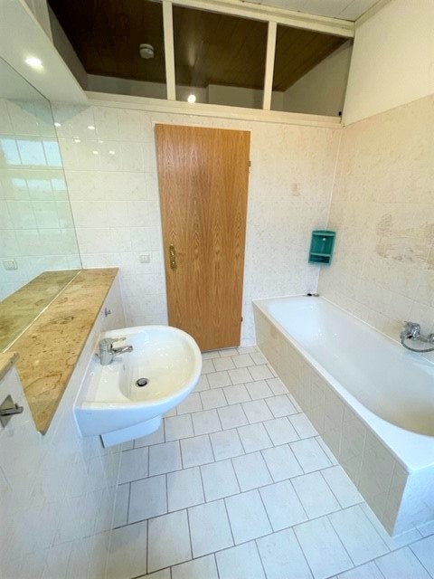 Einbauküche, Bad mit Fenster, Badewanne, Dusche, LaminatBeschreibung