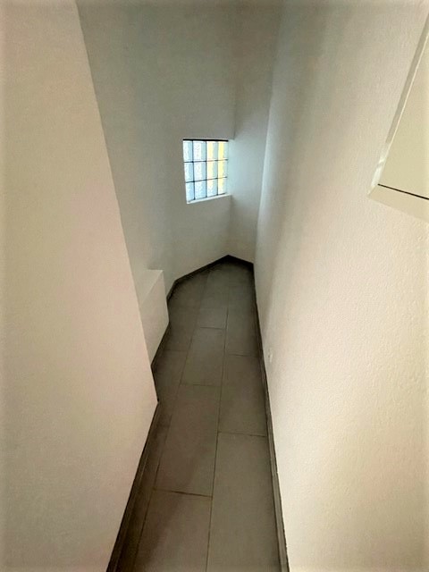 Dieses Ergeschoss-Büro mit seperatem Eingang bietet 2 große offene Räume mit einem Fliesenfußboden, Deckenspots und dekorativen Säulen. Zur Straßeseite sind an den Fenstern und an der Tür Rollos vorhanden. Die Küche mit Tageslichtfenster ist mit einer Einbauküche ausgestattet. Ein WC ist vorhanden mit Waschbecken.