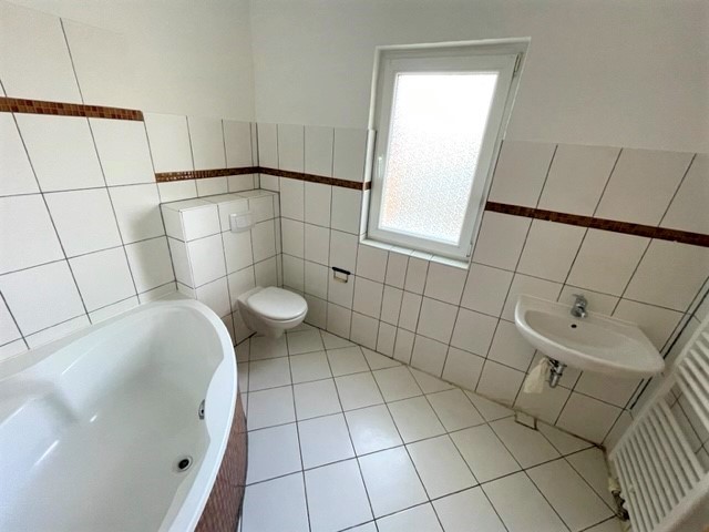 Bad mit Fenster, Badewanne, Laminat, Terasse, HausmeisterserviceBeschreibung